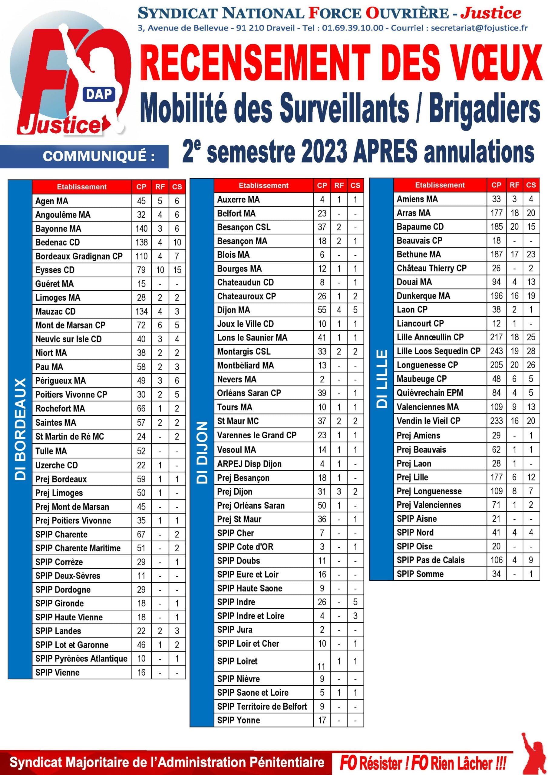Recensement des Vœux pour la Mobilité des Surveillants et Brigadiers – 1er Semestre 2023