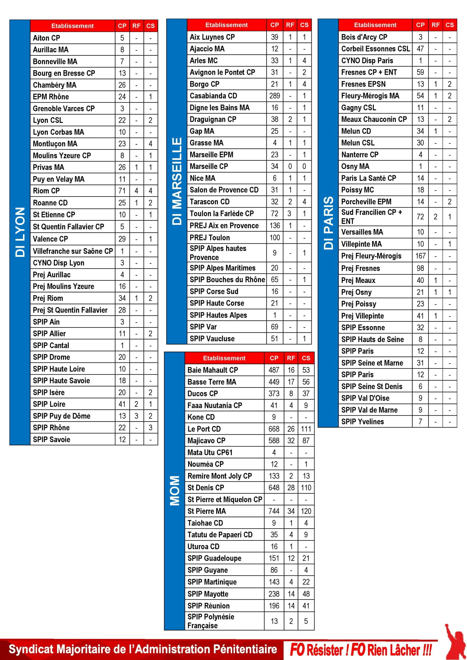 Recensement des demandes de mobilité avant annulations, par établissements, pour la CAP des Surveillants et Brigadiers de janvier 2021 (Informations données à titre indicatif, sous réserve de modification).