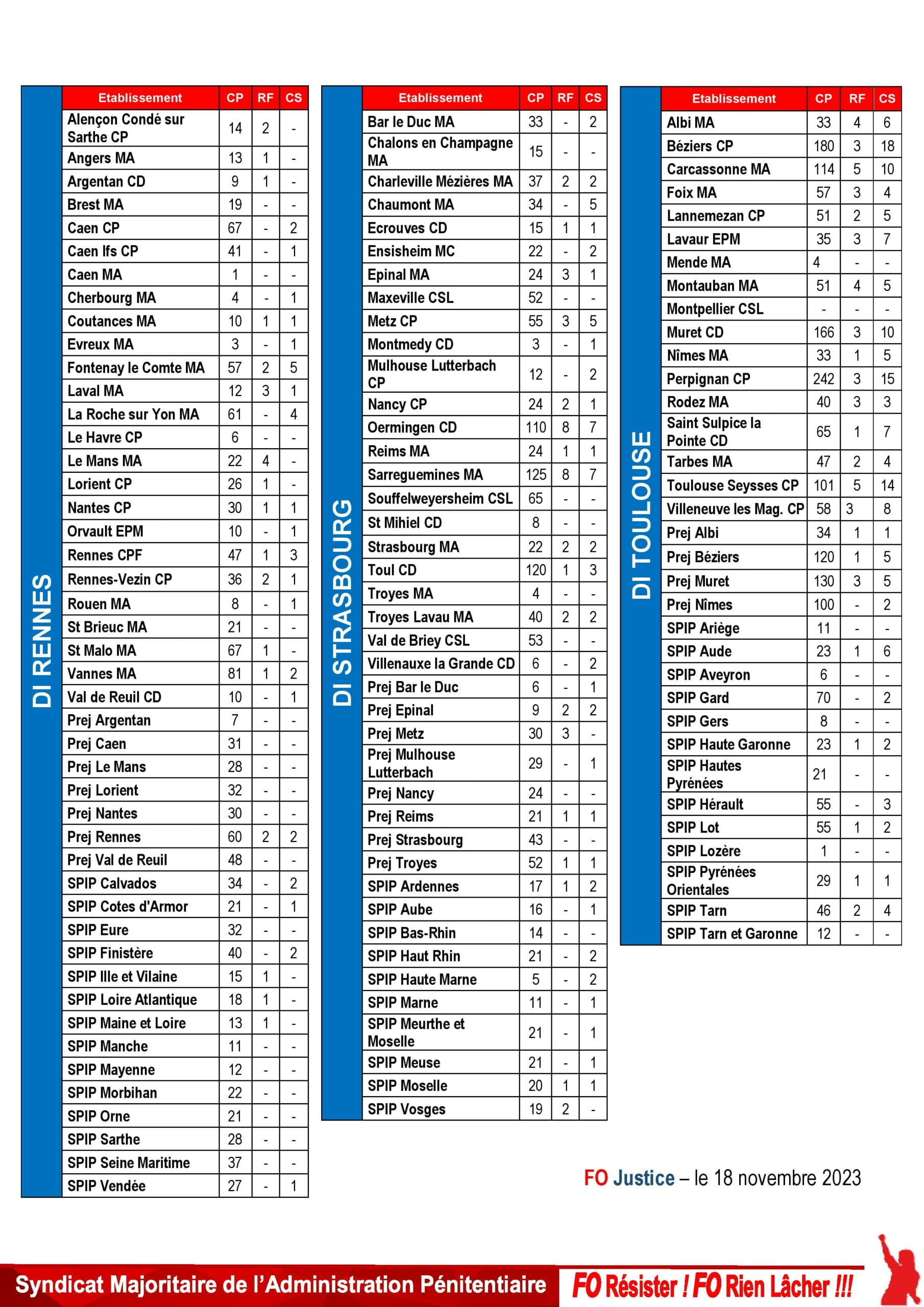 Recensement des demandes de mobilité avant annulations, par établissements, pour la CAP des Surveillants et Brigadiers de novembre 2021 (Informations données à titre indicatif, sous réserve de modification).