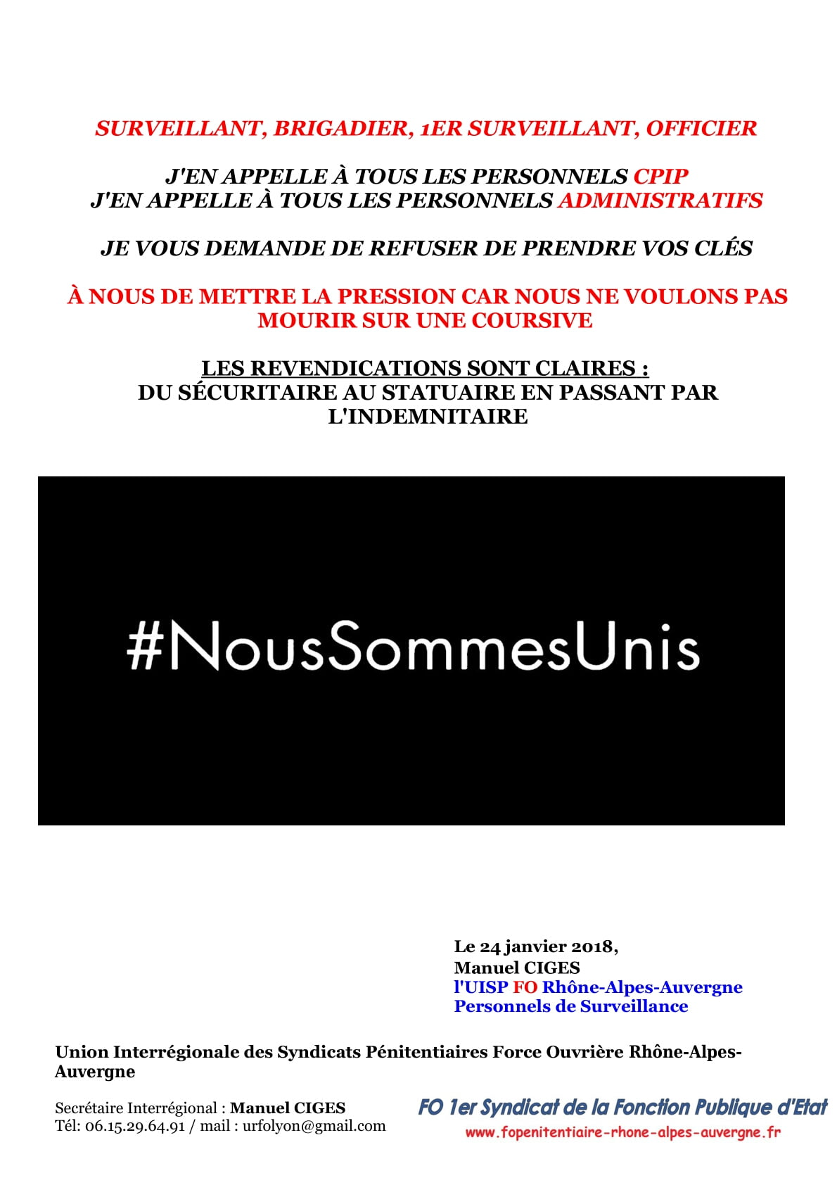 PAR CE COMMUNIQUÉ, J’EN APPELLE À TOUS LES PERSONNELS DE SURVEILLANCE