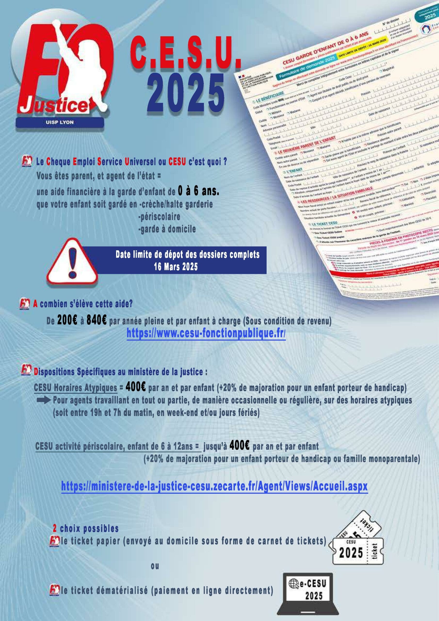 Le CESU Horaires Atypiques est réservé aux agents du ministère de la Justice, travaillant en tout ou partie, de manière occasionnelle ou régulière, sur des horaires atypiques (soit entre 19h et 7h du matin, en week-end, un jour férié) et ayant un revenu fiscal de référence du foyer inférieur à 60 000€.
