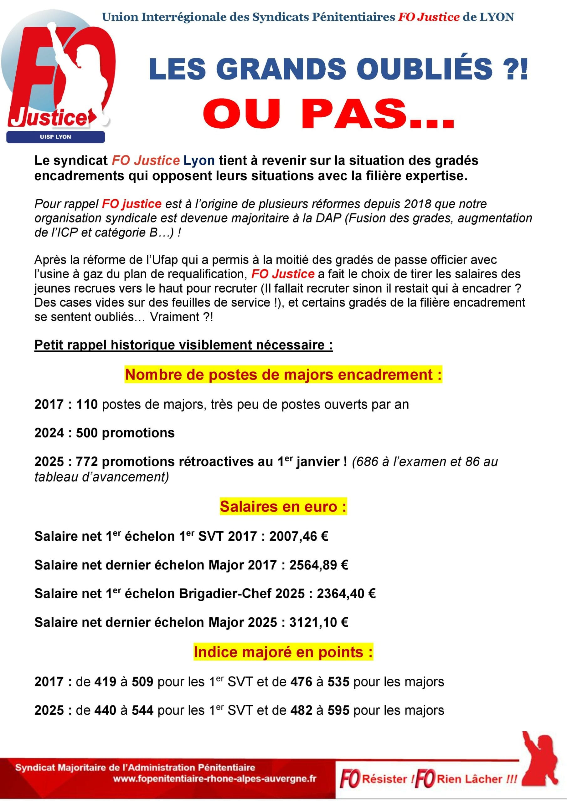 Le syndicat FO Justice Lyon tient à revenir sur la situation des gradés encadrements qui opposent leurs situations avec la filière expertise.