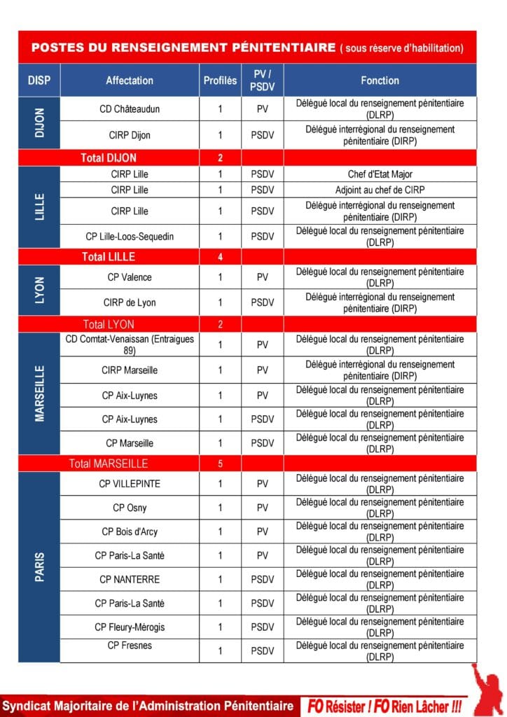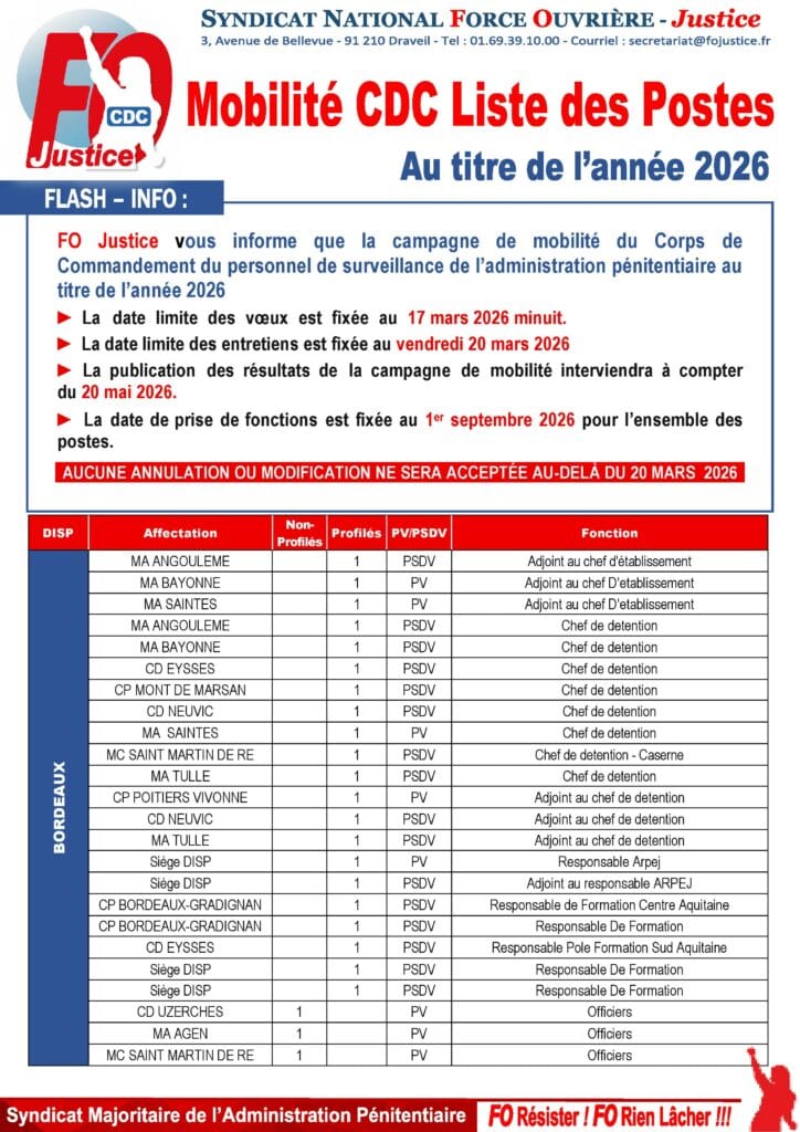 FO Justice vous informe de l’ouverture d’une campagne de mobilité du Corp de Commandement du personnel de surveillance.